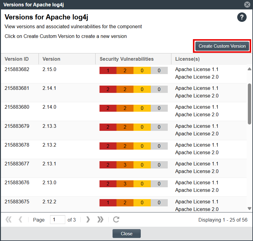- If you have a selected the only license in the System Suggested License category, the new version is created. Click Close to return to the previous window.